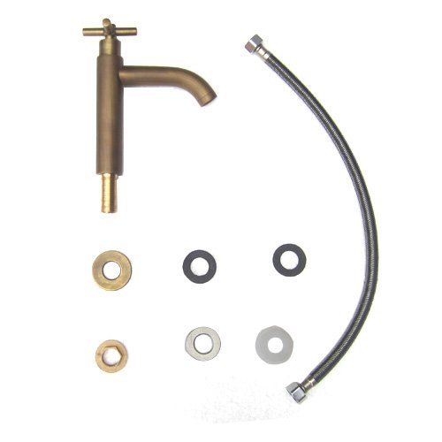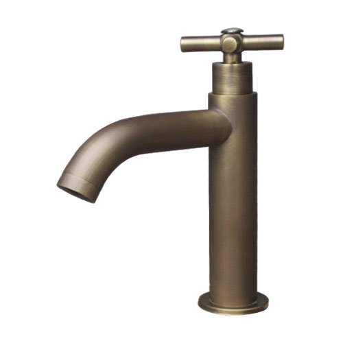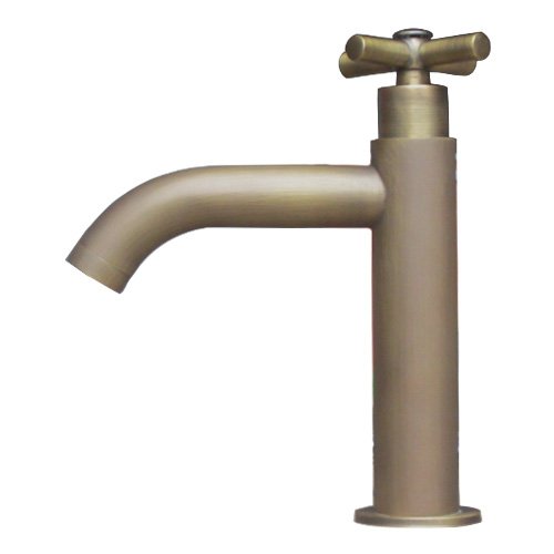 洗面水栓 蛇口 水栓金具 単水栓 クロスハンドル ブロンズ(古銅) [奥行15×吐水口高9cm] INK-0302071H