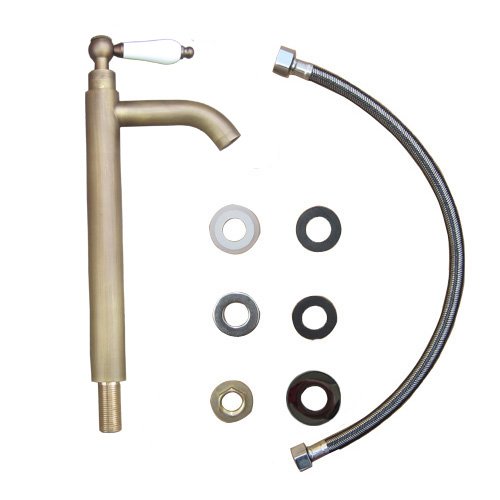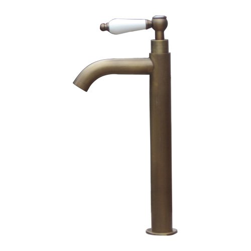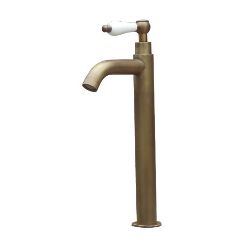 洗面水栓 蛇口 水栓金具 単水栓 シングルレバーハンドル 陶器 トールタイプ ブロンズ(古銅) [奥行16×吐水口高22.5cm] INK-0302070HT