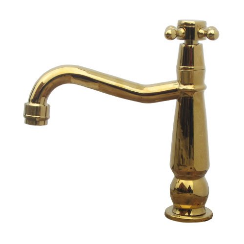 洗面水栓 蛇口 水栓金具 単水栓 クロスハンドル ゴールド(金) [奥行18×吐水口高8.5cm] INK-0302073H