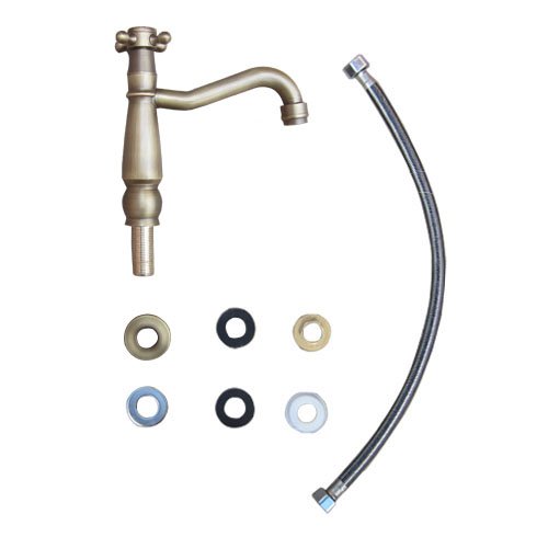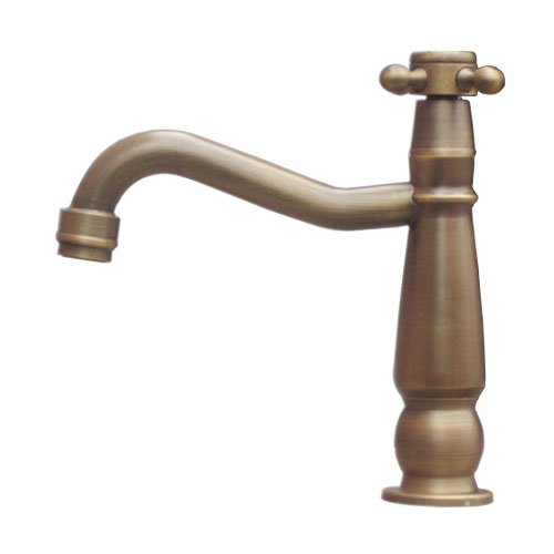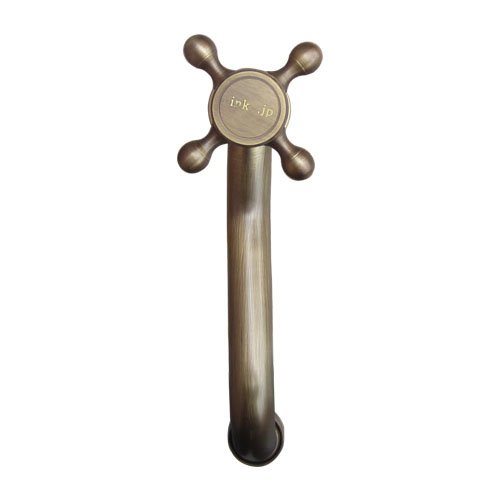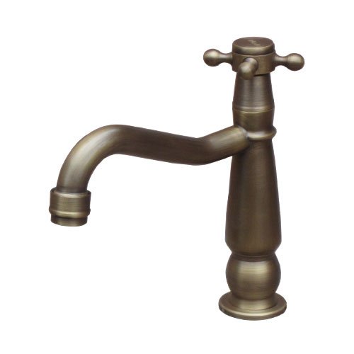 洗面水栓 蛇口 水栓金具 単水栓 クロスハンドル ブロンズ(古銅) [奥行18×吐水口高8.5cm] INK-0302076H
