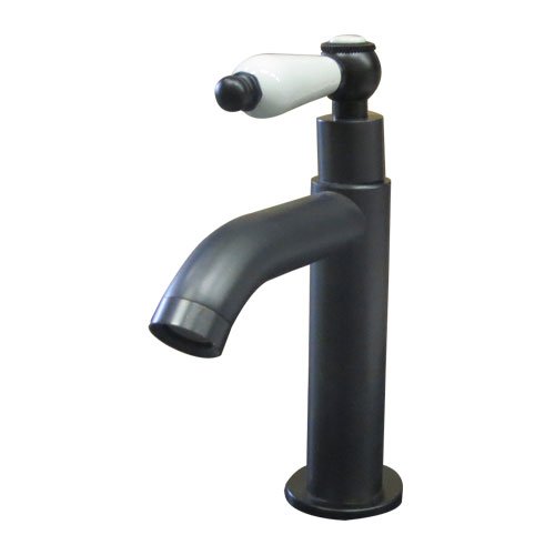 洗面水栓 蛇口 水栓金具 単水栓 シングルレバーハンドル 陶器 ブラック(黒) [奥行16×吐水口高9cm] INK-0302057HT