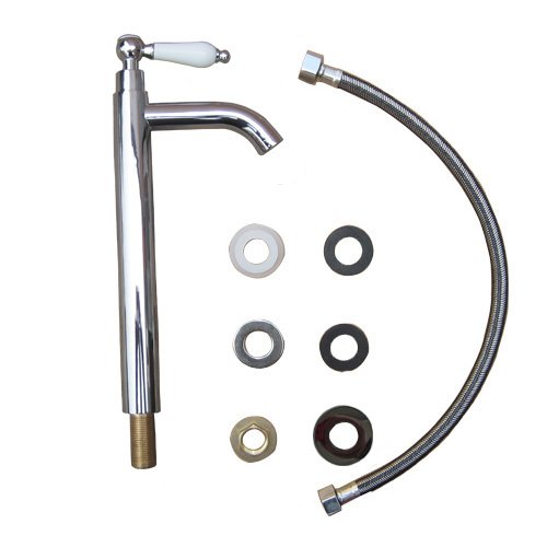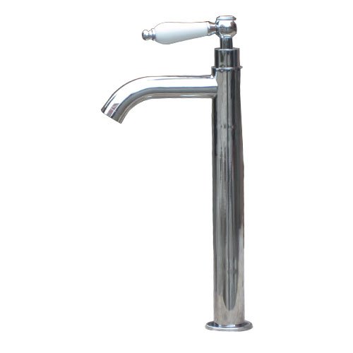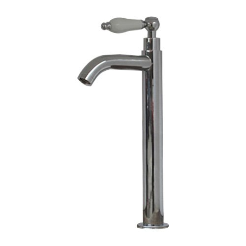 洗面水栓 蛇口 水栓金具 単水栓 シングルレバーハンドル 陶器 トールタイプ シルバー(銀) [奥行16×吐水口高22.5cm] INK-0302051HT