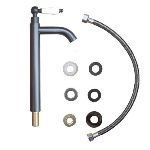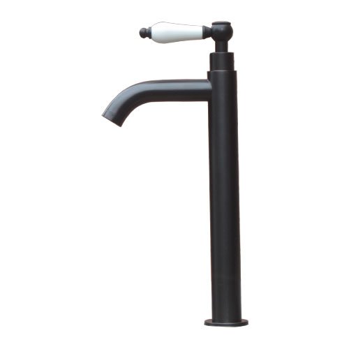 洗面水栓 蛇口 水栓金具 単水栓 シングルレバーハンドル 陶器 トールタイプ ブラック(黒) [奥行16×吐水口高22.5cm] INK-0302053HT