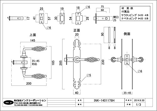 - 〇ドア厚さ:3.5cm〜4.5cm バックセット穴:幅2.0×高2.8cm