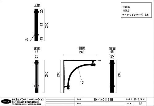 ブラケット シェルフサポート 棚受け 1セット/2個 アイアン 【奥行24×高24cm】 INK-1401153H