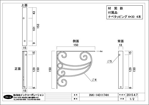 ブラケット シェルフサポート 棚受け 1セット/2個 アイアン 【奥行15×高15cm】 INK-1401174H
