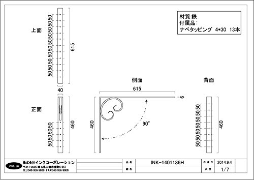 ブラケット シェルフサポート 棚受け 90度タイプ アイアン 【奥行46×高51.5cm】 INK-1401186H