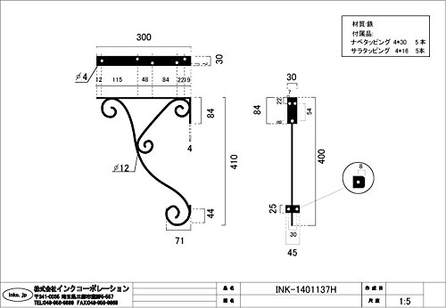 ブラケット シェルフサポート 棚受け アイアン 【奥行30×高40cm】 INK-1401137H