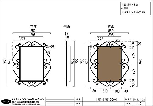 ミラー 鏡 壁掛け アイアン フレーム [幅55×高75cm] INK-1401099H