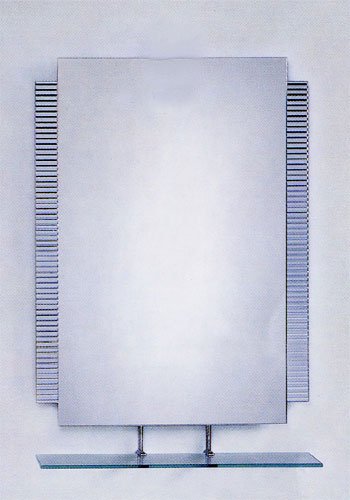 〇シンプルなフレーム無しミラーのガラススタンド付タイプ。