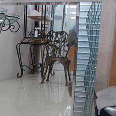 〇シンプルなフレーム無しミラーのガラススタンド付タイプ。
