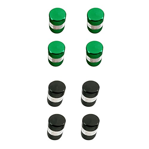 IPOTCH 全14カラー選ぶ 自動車 タイヤステムキャップ アルミ製 カバー 8点セット - 黒と緑