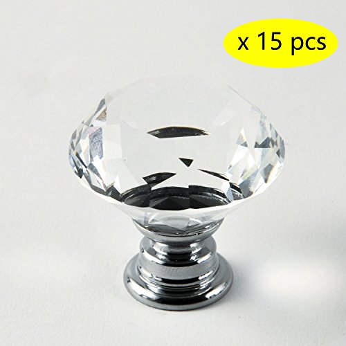 IQUALITE 15pcs Diamond Shape Crystal Glass 30mm Drawer Knob Pull Handle Usd for Caebinet, Drawer [並行輸入品]