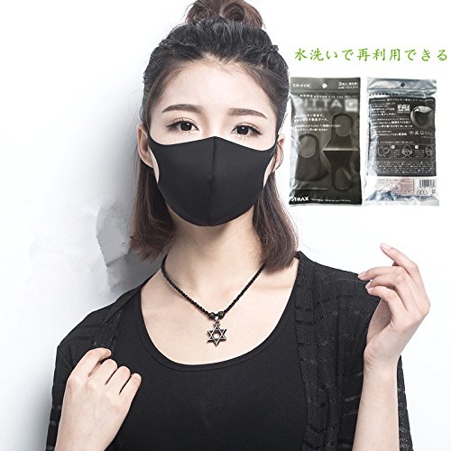 防塵/花粉/かぜ用マスク 水洗い可能 通気性高い ウレタン製 ブラック PMASK2S … (3個セット)