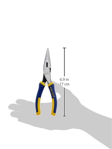 Size:6' Product Description Features durable nickel chromium steel construction. The ProTouch grips provide extra comfort and reduce hand fatigue. Machined jaws provide maximum gripping strength. Induction hardened cutting edge stays sharp longer. These pliers feature a superior long reach design for work in confined areas. IRWIN Tools VISE-GRIP Long Nose Pliers, 6-Inch (2078216) From the Manufacturer The IRWIN Vise-Grip 2708216 - 6' Long Nose Pliers have a induction hardened cutting edge that stays sharper, longer. The machined jaws provide maximum gripping strength. The Long Nose Pliers also have ProTouch grips that have molded handles for comfort and create less hand fatigue. All pliers meet or exceed ANSI specifications.