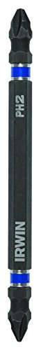 Manufactured with heavy-duty, cold-forged, high-grade steel to withstand high torque output. Most double-ended screwdriving bits require a bit holder for use with impact tools, but IRWIN Impact Performance Series double-ended power bits feature DoubleLok technology so both ends of the bit lock securely into impact drivers and quick-change chucks. In fact, they're engineered for maximum durability and long life with impact tools. These bits combine two bit tips in a durable one-piece design for added convenience and extended life, and each end of the bit has a 1/4" quick-change shank that fits directly into an impact driver - a feature only available with IRWIN bits. The bits are designed with precision tip geometry so they fit fasteners more precisely, which reduces stripping and cam-out. They're manufactured with heavy-duty, cold-forged, high-grade steel to withstand high torque output, and a black oxide finish that resists corrosion and increases the life of the bit. Plus, they also have a unique Power Groove design for use with the exclusive IRWIN Magnetic Collar Attachment, which prevents fasteners from slipping and wobbling.