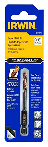 Manufactured with heavy-duty, cold-forged, high-grade steel to withstand high torque output. IRWIN Impact Performance Series TURBOMAX Drill Bits are engineered for maximum durability and long life with impact drivers. They feature a one-piece construction that withstands higher torque loads than standard quick change bits that are built with a two-piece design. They have an exclusive TURBOMAX tip that eliminates "walking," gets 10X faster starts, and stays sharp longer. These bits are made from premium high speed steel with a black and gold oxide finish that resists corrosion. Plus, they have a 1/4" quick change shank that's designed to work with impact drivers, as well as reduce slipping when used in standard drill chucks. 10X faster penetration than standard bits