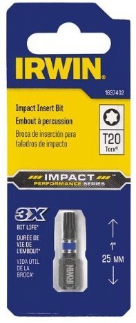 IRWIN Tools IMPACT Performance Series Insert Bit, TORX T20 (1837402), Torx Impact Insert Bits, Built for maximum durability and long life with impact drivers, Manufactured with heavy-duty, cold-forged, high-grade steel to withstand high torque output.