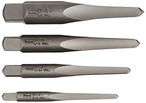 Designed for softer materials or thin-walled pieces such as pipes and fittings., Design eases extraction because it does not expand the material as you remove it., Removes both left-hand and right-hand threaded parts, Extractor size and recommended drill bit size are etched on each tool.