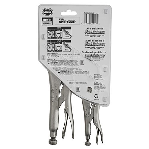 The IRWIN VISE-GRIP Original 2-Piece Locking Pliers Set features high-grade, heat-treated alloy steel construction for maximum toughness and durability. Each piece of the IRWIN pliers set has hardened teeth that are designed to grip from any angle and a classic trigger release designed to provide maximum locking force. The set includes 10WR and 5WR locking pliers to suit a wide assortment of needs.