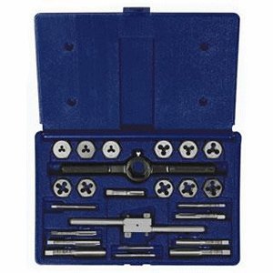 24 Piece, Metric Tap & Hex Die Set, Dies Are Ideal For Routine Maintenance, Repair Work & For Rethreading Where High Accuracy & Tolerance Thread Is Not Critical, Taps Have Straight Flutes Which Are Ground To Provide Rapid Chip Removal For Efficient Threading, Designed For Hand Threading Work In A Variety Of Materials Taps Produce A Class 2B Thread, Includes Metric 3 mm x 0.50, 4 mm x 0.70, 5 mm x 0.80, 6 mm x 1.00, 7 mm x 1.00, 8 mm x 1.25, 9 mm x 1.25, 10 mm x 1.50, 12 mm x 1.50, 12 mm x 1.7M Taps & Dies, Pipe 1/8inch x 28 BSP Tap & Die, Plain Die Stock For 1inch Dies, Offset Adjustable Tap Wrench For Taps #0 - 1/2inch.