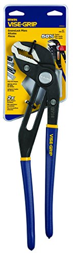 A simple push of a button adjusts the lower jaw twice faster than traditional groove joint pliers. Multi-Groove Ratcheting System has twice the groove positions of other groove joint pliers, for precise positioning to grip any type of surface. Anti-pinch, non-slip ProTouch Grips provide comfort, control, and less hand fatigue. Right angle teeth grip in all directions for maximum bite. Metal Injection Molding process for precision parts delivers strength and exceptional performance. IRWIN Tools VISE-GRIP GrooveLock Pliers, 16-Inch (2078116)