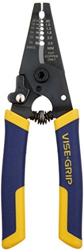 The IRWIN VISE-GRIP Wire Stripper and Cutter features reliable and accurate 10-24 AWG pre-measured serrations for stripping wire of varying gauges. This wire stripper and cutter is designed with non-slip ProTouch Grips reduce hand fatigue, a spring-assisted jaw opening, and a pliers-style nose for pulling and looping wire. Backed by the IRWIN VISE-GRIP Lifetime Guarantee.