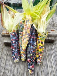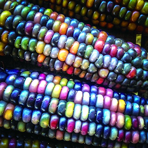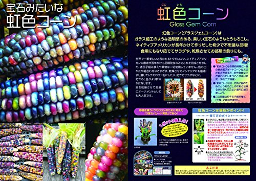 「まるで宝石みたい!!」人気のとうもろこし「虹色コーン」の苗です。育て方は普通のとうもろこしと同じですが、通常の黄色品種のそばに植えると、風で花粉が飛び交雑させてしまうことがあるのでご注意ください。乾燥させて飾りに。食べる場合は茹でたり焼いたりして加熱調理してください。生では食べにくいです 虹色コーンの育て方! 生育適温:20~30℃ 定植 1週間前には有機配合肥料などの元肥を入れて、しっかり耕します。 水はけと日当たりの良い場所に植えましょう。 トウモロコシの実りを良くするためには最低2列になるように定植します。 株間30cm・条間50cmが目安です。 トウモロコシは、本葉が5~6枚程度の時に雄穂・雌穂が内部でできあがってきます。 この時期に水切れしたり肥料が不足していると、実のできが悪くなります。 追肥は、草丈50cmの時と、雄穂が出た時の、合計2回行います。 1株につき有機配合肥料などを軽く1握りずつまき、肥料が隠れるように通路部から土をかけます。 マルチをしている場合は、1度目の追肥の時にはぎ取ります。 株元から分けつ枝が出てきますが、これは取らずにそのまま育てます。 1番穂のみ残して他は取り除いてしまっても良いですが、取り除かなくてもそれほど1番穂の生育に差はありません。グラスジェムコーンの場合は穂はすべて残した方が良いでしょう。 害虫 トウモロコシ栽培における最大の天敵が「アワノメイガ」です。 雄穂が出始めたときと、その後、1週間間隔で殺虫剤を散布します。 農薬を使いたくない場合は雄穂が出た後、雄を穂切り取って人工授粉をし、 雌穂に近い場所に入ってしまった場合はカッターで縦に切り裂いて幼虫を駆除してください。実を不織布等で覆う防除法もあります。 収穫 適期収穫が重要です。 雌穂から絹糸がでて20日前後が収穫適期となります。 絹糸が茶色くなったら少し皮を剥いてみて、しっかり充実していればOKです。