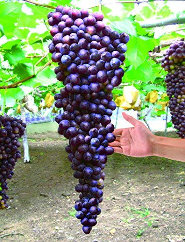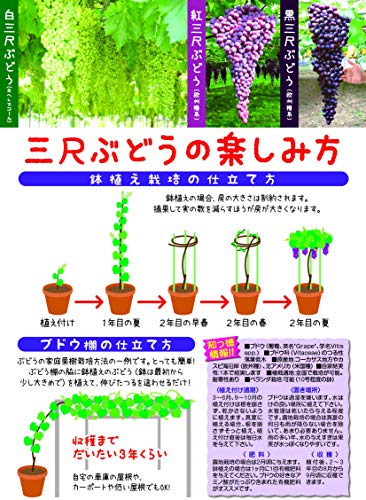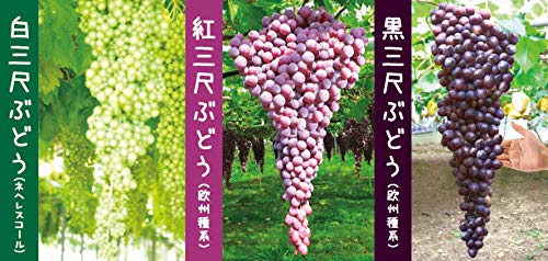 迫力の巨大房ぶどうの3種セット!!希少品!実は甘く栽培容易! 学名:Vitaceae Vitis ブドウ科ブドウ属 耐寒性落葉蔓性低木 原産地:コーカサス地方やカスピ海沿岸(欧州種) 自家結実性有り 3品種ともとても強健で育てやすく、初心者の方にもおすすめです。 種がありますが、甘くてとても美味しいぶどうです。 迫力の大きさなので贈り物としても人気! 鑑賞用品種としても人気で、良く観光ぶどう園のアイキャッチとしても栽培されています。(房を大きくする場合は、棚づくりにして大きい房を残して摘果し、樹が房の重さに耐えられるようしっかり支える必要があります) 実はプリプリしていてジューシーでまさにハチミツのような甘さ!! <植付け適期> 3~6月、9~11月の植付けは根を崩さず、乾かさないように植えます。真夏に植える場合、根を崩さずそっと植え、植付け直後は毎日水を与えて下さい。 <置き場所> ブドウは過湿を嫌うので、日当たりと水はけの良い場所に植えて下さい。水管理は乾いたら与える程度です。露地栽培の場合は真夏の何日も雨が降らない場合を除いて、あまり必要ありません。雨の多い年、水の与えすぎは果実が水っぽくなりやすいです。 鉢植えにする場合は10号程度の大きく深さのある鉢に植え、伸びてきた蔓を円形の支柱に這わせてアンドン仕立てにしてください。 <肥料> 露地栽培の場合は2月頃に与えます。鉢植えの場合は1ヶ月に1回有機肥料を与えてください。ブドウの好きなアミノ酸がたっぷり含まれた有機肥料がオススメです。 <収穫> 植付け後、2~3年目の8月から9月頃に収穫できます。
