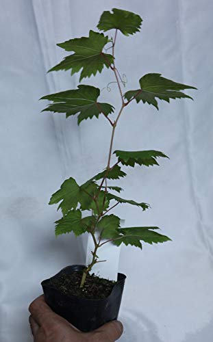観光ぶどう園でも一番人気の巨大な房! 実は甘く栽培容易! 学名:Vitaceae Vitis ブドウ科ブドウ属 耐寒性落葉蔓性低木 原産地:コーカサス地方やカスピ海沿岸(欧州種) 自家結実性有り 果房重2Kg、長さが60cmにも達する円錐形大房の品種。強健で栽培容易。果皮は美しい紫紅色。果粒8~10gで長卵形大粒。種がありますが、甘くておいしいぶどうです。 迫力の大きさなので贈り物としても人気!糖度高く21度位にも上がるが、味は昔ながらの甘酸っぱい酸味も感じられるぶどう本来の美味しさです。熟期は9月中旬頃からだが、日持ちに優れ遅くまでぶら下げておく事ができます。 とても強健で育てやすく、初心者の方にもおすすめです。 鑑賞用品種としても人気で、良く観光ぶどう園のアイキャッチとしても栽培されています。(房を大きくする場合は、棚づくりにして大きい房を残して摘果し、樹が房の重さに耐えられるようしっかり支える必要があります) 実はプリプリしていてジューシーでまさにハチミツのような甘さ!! <植付け適期> 3~6月、9~11月の植付けは根を崩さず、乾かさないように植えます。真夏に植える場合、根を崩さずそっと植え、植付け直後は毎日水を与えて下さい。 <置き場所> ブドウは過湿を嫌うので、日当たりと水はけの良い場所に植えて下さい。水管理は乾いたら与える程度です。露地栽培の場合は真夏の何日も雨が降らない場合を除いて、あまり必要ありません。雨の多い年、水の与えすぎは果実が水っぽくなりやすいです。 鉢植えにする場合は10号程度の大きく深さのある鉢に植え、伸びてきた蔓を円形の支柱に這わせてアンドン仕立てにしてください。 <肥料> 露地栽培の場合は2月頃に与えます。鉢植えの場合は1ヶ月に1回有機肥料を与えてください。ブドウの好きなアミノ酸がたっぷり含まれた有機肥料がオススメです。 <収穫> 植付け後、2~3年目の8月から9月頃に収穫できます。
