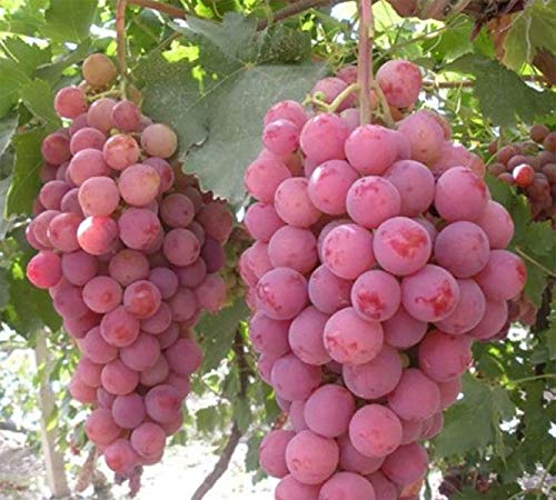 - 迫力の大きさなので贈り物としても人気!糖度高く21度位にも上がるが、味は昔ながらの甘酸っぱい酸味も感じられるぶどう本来の美味しさです。熟期は9月中旬頃からだが、日持ちに優れ遅くまでぶら下げておく事ができます。 とても強健で育てやすく、初心者の方にもおすすめです。 鑑賞用品種としても人気で、良く観光ぶどう園のアイキャッチとしても栽培されています。(房を大きくする場合は、棚づくりにして大きい房を残して摘果し、樹が房の重さに耐えられるようしっかり支える必要があります) 実はプリプリしていてジューシーでまさにハチミツのような甘さ!!