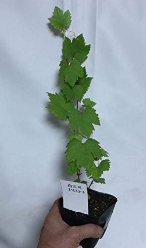 聖書にも登場すると言われている伝説の巨大房ぶどう!!栽培容易! 学名:Vitaceae Vitis ブドウ科ブドウ属 耐寒性落葉蔓性低木 原産地:コーカサス地方やカスピ海沿岸(欧州種) 自家結実性有り 聖書にも紹介されていると言われている伝説の巨大房ぶどうです。 果房重3~5Kg、長さが最大1mにも達する大房の品種です。果肉がしっかりした卵形中粒。世界のぶどう約8000種の中で最大果房と言われ、1房約10kgの記録があると伝えられる伝説の品種。 果皮は黄緑色で、とても強健で育てやすく、初心者の方にもおすすめです。 鑑賞用品種としても人気で、観光ぶどう園のアイキャッチとしても栽培されています。(房を大きくする場合は、棚づくりにして大きい房を残して摘果し、樹が房の重さに耐えられるようしっかり支える必要があります) 通常の棚づくりの育て方でも房長が30センチから40センチにもなります。 見た目のインパクトだけでなく味も良く、種はありますが糖度は20度以上にも上がり、実はプリプリしていてジューシーでまさにハチミツのような甘さ!! ヨーロッパの昔の絵でこのようなものを見たら、それは、ネヘレスコールだと思われます。ぶどうの房があまりにも巨大なので1つの房に棒を通し、二人の男が、かついだと言われています。 <植付け適期> 3~6月、9~11月の植付けは根を崩さず、乾かさないように植えます。真夏に植える場合、根を崩さずそっと植え、植付け直後は毎日水を与えて下さい。 <置き場所> ブドウは過湿を嫌うので、日当たりと水はけの良い場所に植えて下さい。水管理は乾いたら与える程度です。露地栽培の場合は真夏の何日も雨が降らない場合を除いて、あまり必要ありません。雨の多い年、水の与えすぎは果実が水っぽくなりやすいです。 鉢植えにする場合は10号程度の大きく深さのある鉢に植え、伸びてきた蔓を円形の支柱に這わせてアンドン仕立てにしてください。 <肥料> 露地栽培の場合は2月頃に与えます。鉢植えの場合は1ヶ月に1回有機肥料を与えてください。ブドウの好きなアミノ酸がたっぷり含まれた有機肥料がオススメです。 <収穫> 植付け後、2~3年目の8月から9月頃に収穫できます。