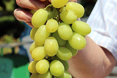 - 聖書にも紹介されていると言われている伝説の巨大房ぶどうです。 果房重3~5Kg、長さが最大1mにも達する大房の品種です。果肉がしっかりした卵形中粒。世界のぶどう約8000種の中で最大果房と言われ、1房約10kgの記録があると伝えられる伝説の品種。 果皮は黄緑色で、とても強健で育てやすく、初心者の方にもおすすめです。 鑑賞用品種としても人気で、観光ぶどう園のアイキャッチとしても栽培されています。(房を大きくする場合は、棚づくりにして大きい房を残して摘果し、樹が房の重さに耐えられるようしっかり支える必要があります) 通常の棚づくりの育て方でも房長が30センチから40センチにもなります。