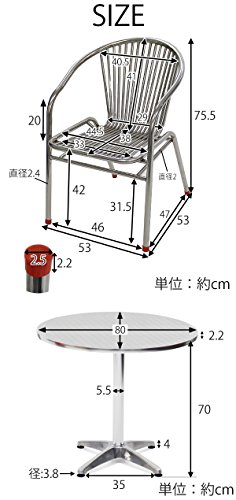 - 本体寸法(チェア) : 約53cm(幅)x約53cm(奥行)x約75.5cm(高さ)