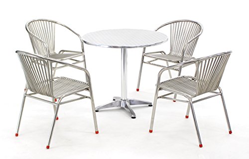 ガーデン5点セット ステンレス製 ガーデンチェア ガーデンテーブル ガーデンテーブルセット テーブルセット テーブルチェア スタッキングチェア 収納 ガーデン 家具 ガーデニング 屋外 庭 ベランダ テラス 椅子 イス いす 軽量 軽い カフェ t52 w80