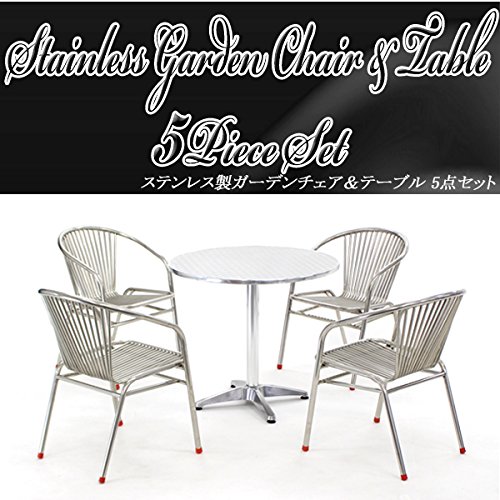 ★ステンレス製ガーデンチェア&テーブル5点セット (チェア 4脚・テーブル 1 脚)★