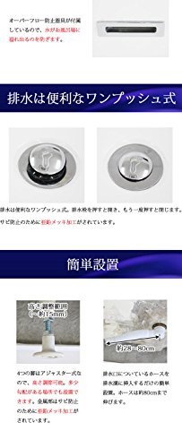●排水は便利なワンプッシュ式。排水栓を押すと開き、もう一度押すと閉じます。サビ防止のために亜鉛メッキ加工がされています。