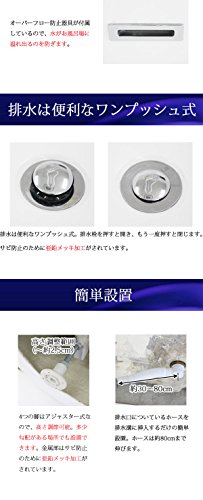 ●排水は便利なワンプッシュ式。排水栓を押すと開き、もう一度押すと閉じます。サビ防止のために亜鉛メッキ加工がされています。