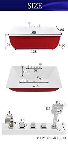 バスタブ 浴槽 バス お風呂 洋風バスタブ 風呂 置き型 洋式 アクリル製 サイズ W1690×D850×H590 bath-082