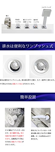 - 素材:アクリル、亜鉛メッキ加工スチール(金属部)、プラスチック(シャワーヘッド)、ステンレス(蛇口)