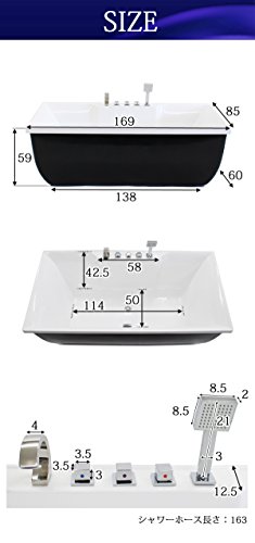 バスタブ 浴槽 バス お風呂 洋風バスタブ 風呂 置き型 洋式 アクリル製 サイズ W1690×D850×H590 bath-083
