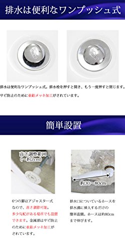 ●排水は便利なワンプッシュ式。サビ防止のために亜鉛メッキ加工がされています。