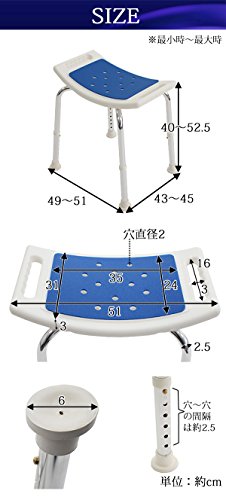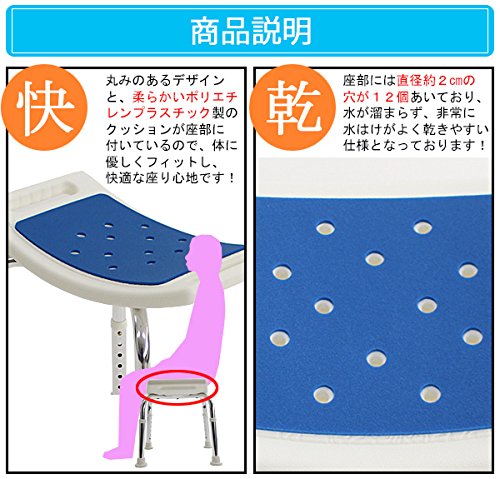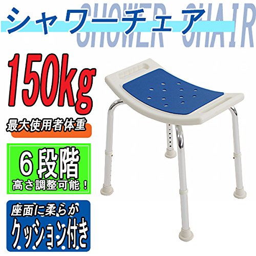 シャワーチェア シャワーベンチ シャワーステップ アルミ製 高さ調整 6段階高さ調整 座部横幅約51cm ワイドな横幅 座部奥行約31cm ワイドな奥行 柔らかクッション付き 福祉 介護 風呂 浴室 バス 椅子 イス 耐荷重150kg W51×D45×H52.5 jb01