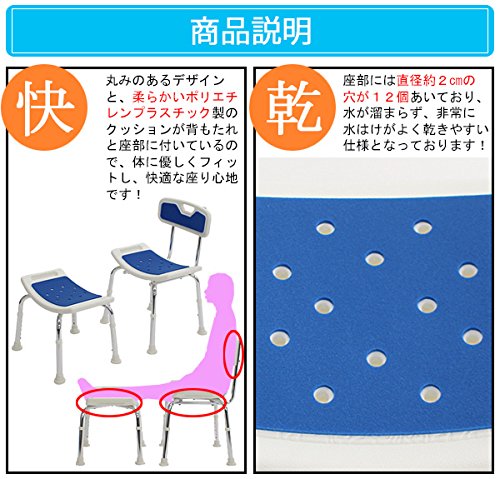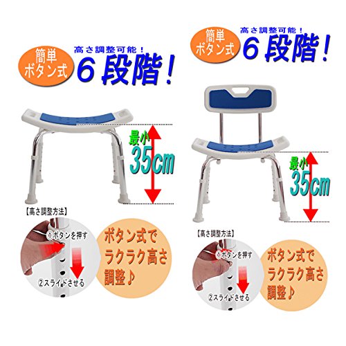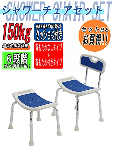 シャワーチェアセット シャワーベンチ シャワーステップ 背もたれなし 背もたれ付き アルミ製 6段階 高さ調整 座部横幅約51cm ワイドな横幅 座部奥行約31cm ワイドな奥行 柔らかクッション付き 福祉 介護 風呂 浴室 バス 椅子 イス 耐荷重150kg jbset0102
