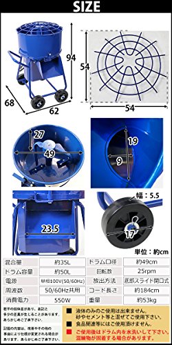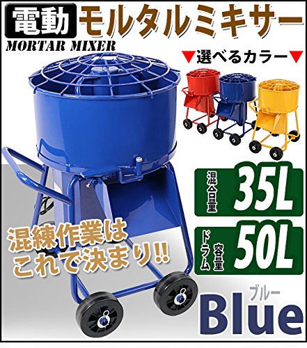 モルタルミキサー 青 混合量35L ドラム容量50L 電動 ミニミキサー 100Vモーター ミニモルタルミキサー 電動ミキサー 混練ミキサー 混練機 攪拌機 かくはん機 電動モルタルミキサー コンクリート モルタル 堆肥 肥料 飼料 ミキサー 攪拌 混錬 ブルー mmixerdc50blue