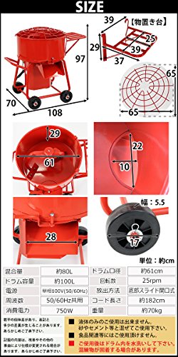モルタルミキサー 赤 混合量80L ドラム容量100L 物置き台付き 電動 ミニミキサー ミニモルタルミキサー 電動ミキサー 混練ミキサー 混練機 攪拌機 かくはん機 電動モルタルミキサー コンクリート モルタル 堆肥 肥料 飼料 ミキサー 攪拌 混錬 レッド mmixerdc00red