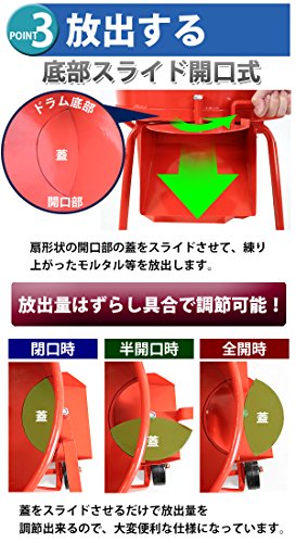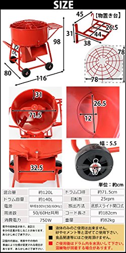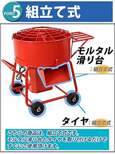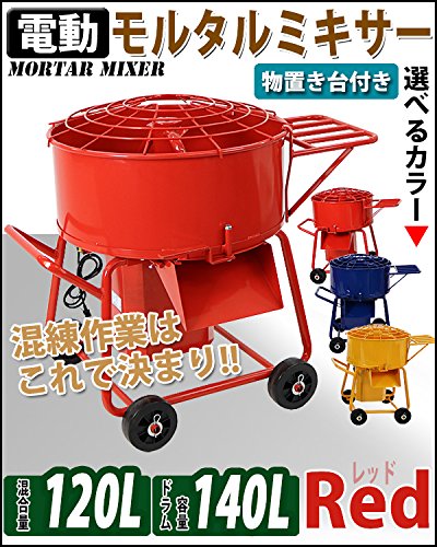 モルタルミキサー 赤 混合量120L ドラム容量140L 物置き台付き 電動 ミニミキサー ミニモルタルミキサー 電動ミキサー 混練ミキサー 混練機 攪拌機 かくはん機 電動モルタルミキサー コンクリート モルタル 堆肥 肥料 飼料 ミキサー 攪拌 混錬 レッド mmixerdc40red