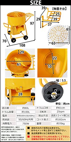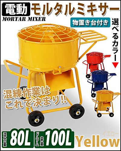 モルタルミキサー 黄 混合量80L ドラム容量100L 物置台付 電動 ミニミキサー ミニモルタルミキサー 電動ミキサー 混練ミキサー 混練機 攪拌機 かくはん機 電動モルタルミキサー コンクリート モルタル 堆肥 肥料 飼料 ミキサー 攪拌 混錬 イエロー mmixerdc00yel