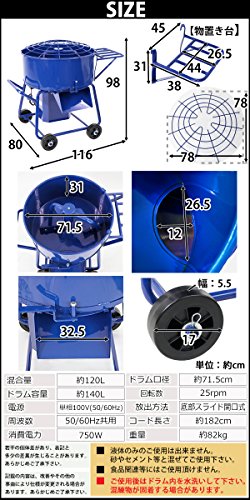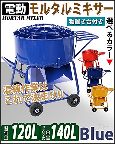 モルタルミキサー 青 混合量120L ドラム容量140L 物置き台付 電動 ミニミキサー ミニモルタルミキサー 電動ミキサー 混練ミキサー 混練機 攪拌機 かくはん機 電動モルタルミキサー コンクリート モルタル 堆肥 肥料 飼料 ミキサー 攪拌 混錬 ブルー mmixerdc40blue