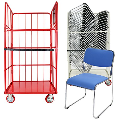 カゴ台車付き(レッド Cタイプ) 22脚セット ファブリック ミーティングチェア 会議イス 会議椅子 スタッキングチェア パイプチェア パイプイス パイプ椅子 ライトブルー